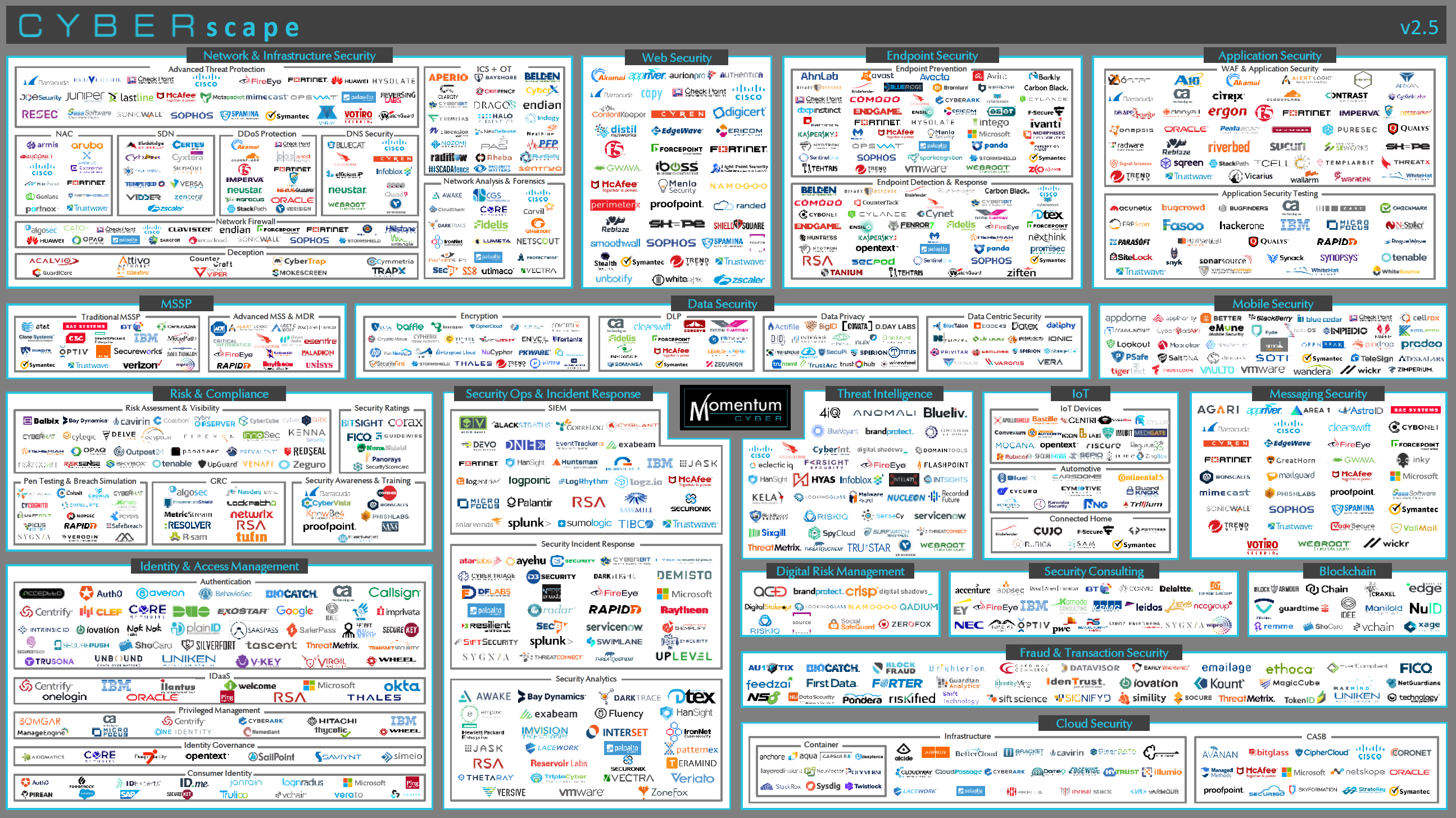 The first thing that makes me smile about the cybersecurity industry as a whole and almost every segment of cybersecurity, including Armor's security-as-a-service segment, is the growth happening in the industry and the ever-evolving market landscape and technological approaches to solving the problems our world faces when it comes to keeping applications and data safe in the cloud. Just take a look at the cybersecurity market landscape according to Momentum.